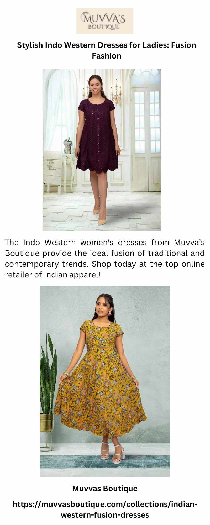 The Indo Western women's dresses from Muvva’s Boutique provide the ideal fusion of traditional and contemporary trends. Shop today at the top online retailer of Indian apparel!